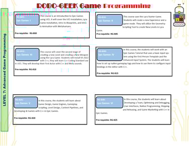 Our courses help students progressively understand the complexities of the ever-changing technology field. We offer 40 courses organized into seven levels, each with increasing difficulty. Our new courses in Artificial Intelligence (AI) and Advanced Game Programming with Epic Games and C++ are now available.